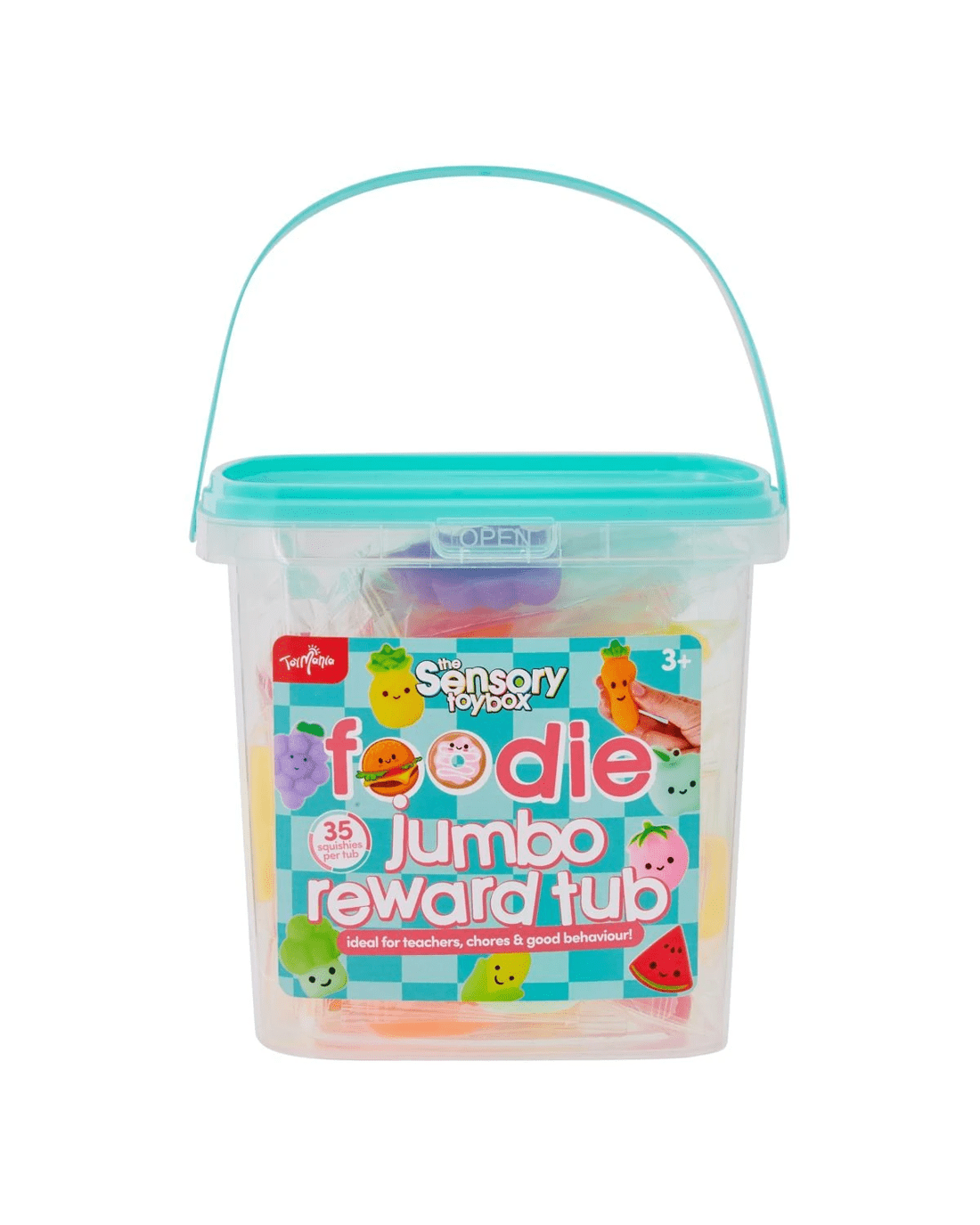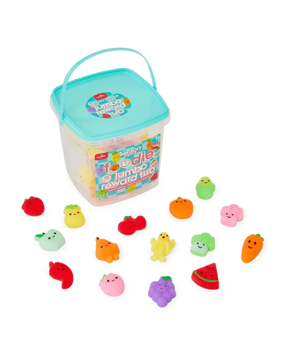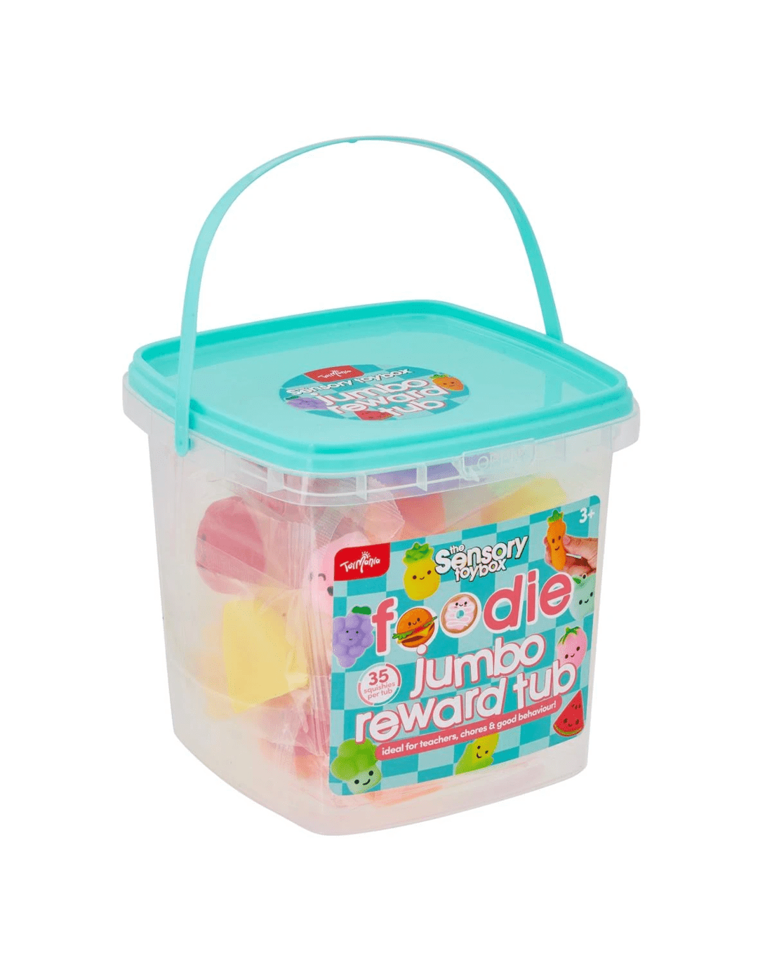 The ToyMania The Sensory Toy Box Foodie Jumbo Reward Tub offers a playful collection of food inspired sensory toys designed to delight and engage young hands. Packed inside a durable reusable tub, this set includes soft squishy items and decorative stickers that inspire imaginative play and sensory exploration. The foodie theme adds a fun twist that makes it ideal for rewards, party favours or everyday play. With its compact design and engaging textures, this reward tub is a great option for supervised play that supports creativity and tactile discovery.