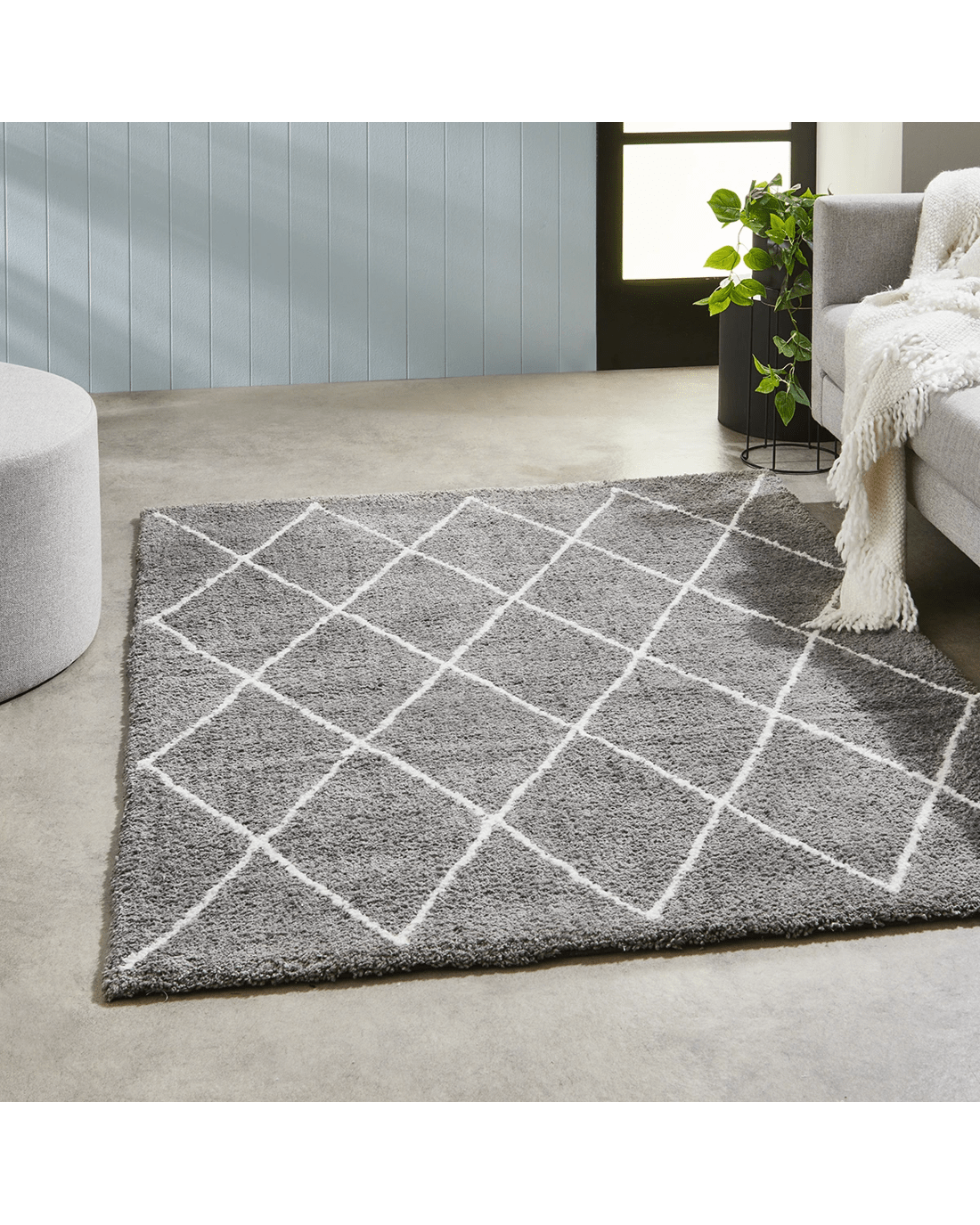 Trellis Shag Rug - Grey, Medium - 180cm x 133cm