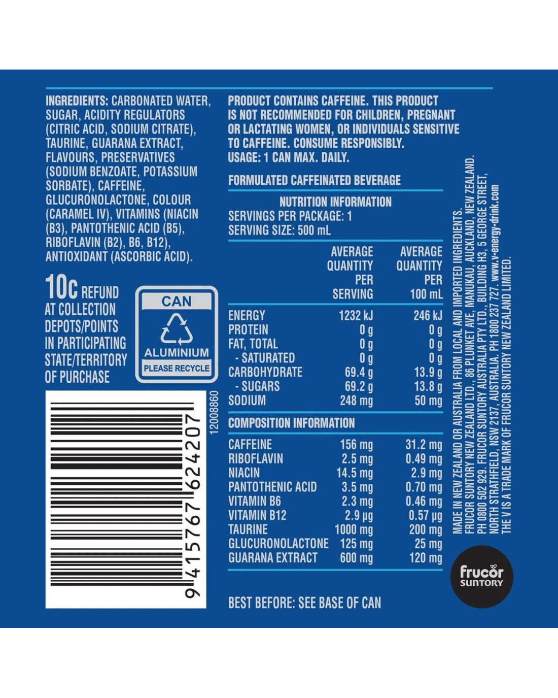 V Guarana Energy Drink Can 500ml