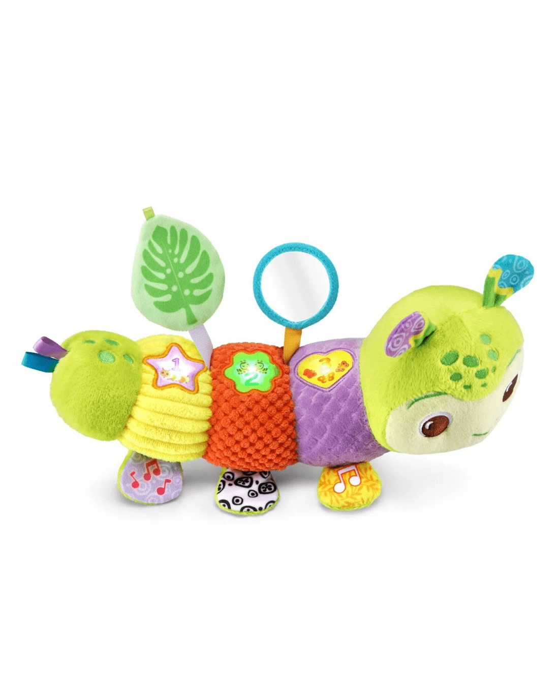 • Caterpillar has 6 soft legs, a self-discovery mirror and a dangling crinkly leaf