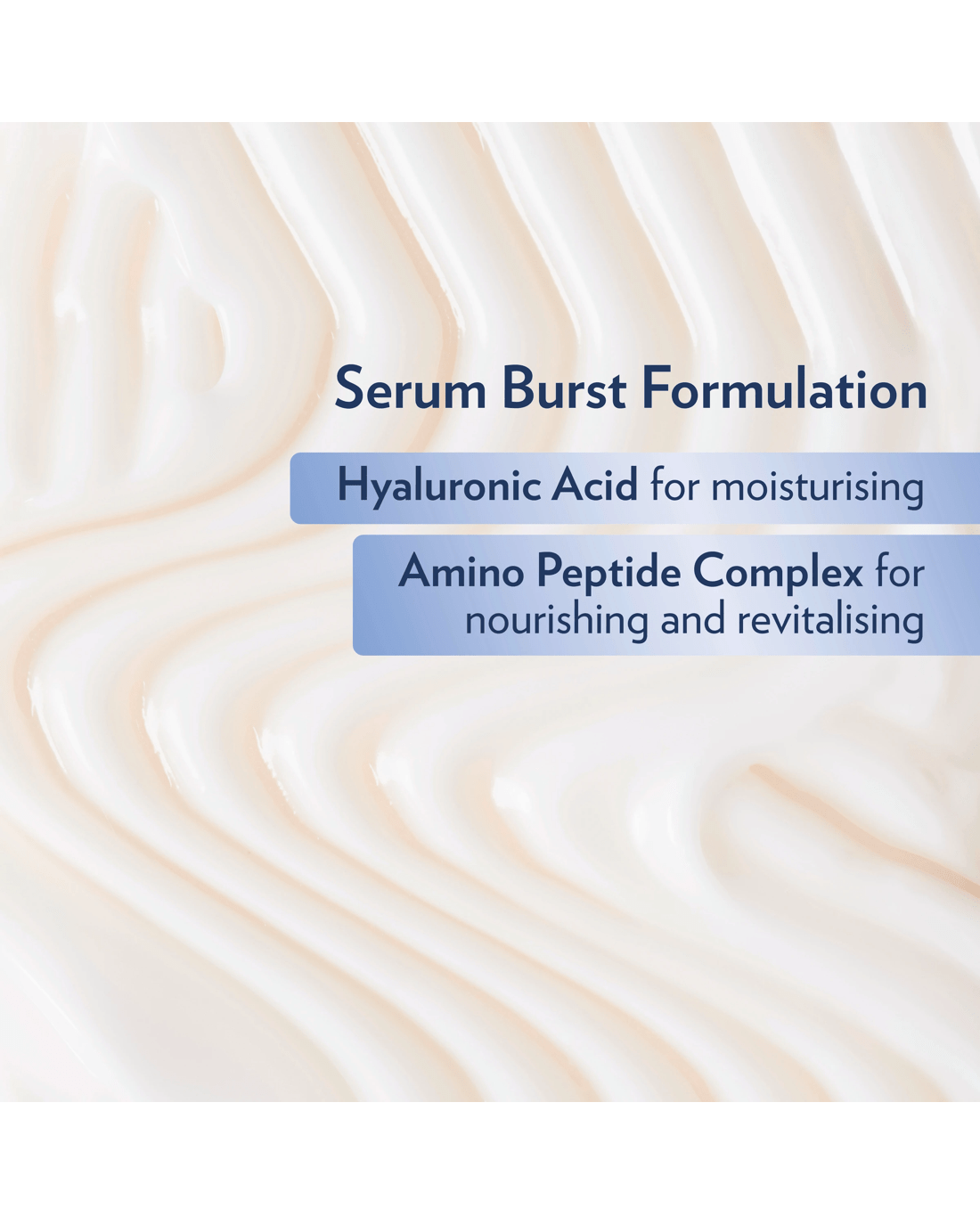 - Serum burst formulation: Hyaluronic Acid for moisturising amino peptide complex for nourishing and revitalising