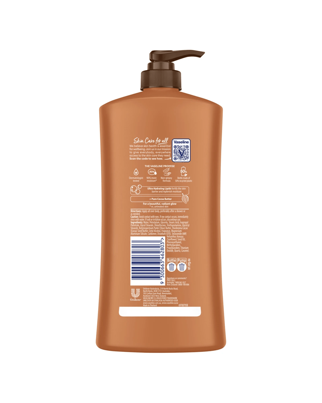 This Vaseline lotion bottle is made of 50% recycled plastic. Vaseline has a range of products to help restore, soothe and moisturise all skin types. We believe skin care is essential for well-being. That?s why Vaseline is working towards giving everybody, everywhere, access to the skin care they need.