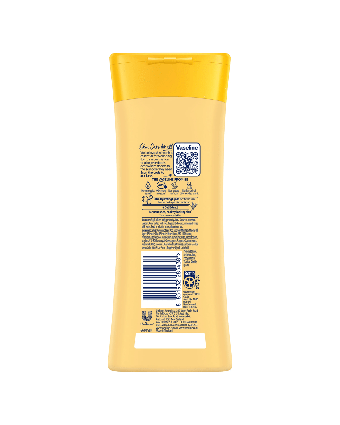 This Vaseline lotion bottle is made of 50% recycled plastic. Please recycle your Vaseline bottle after use. Vaseline has a range of products to help restore, soothe and moisturise all skin. We believe skin care is essential for well-being. That’s why Vaseline is working towards giving everybody, everywhere, access to the skin care they need. Learn more about our global partnership with Direct Relief at Vaseline.com.au.