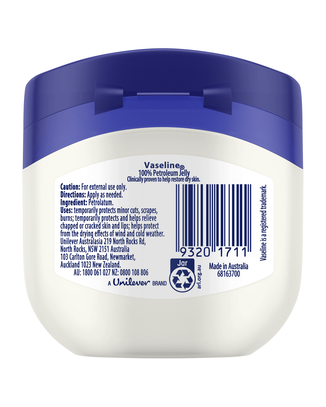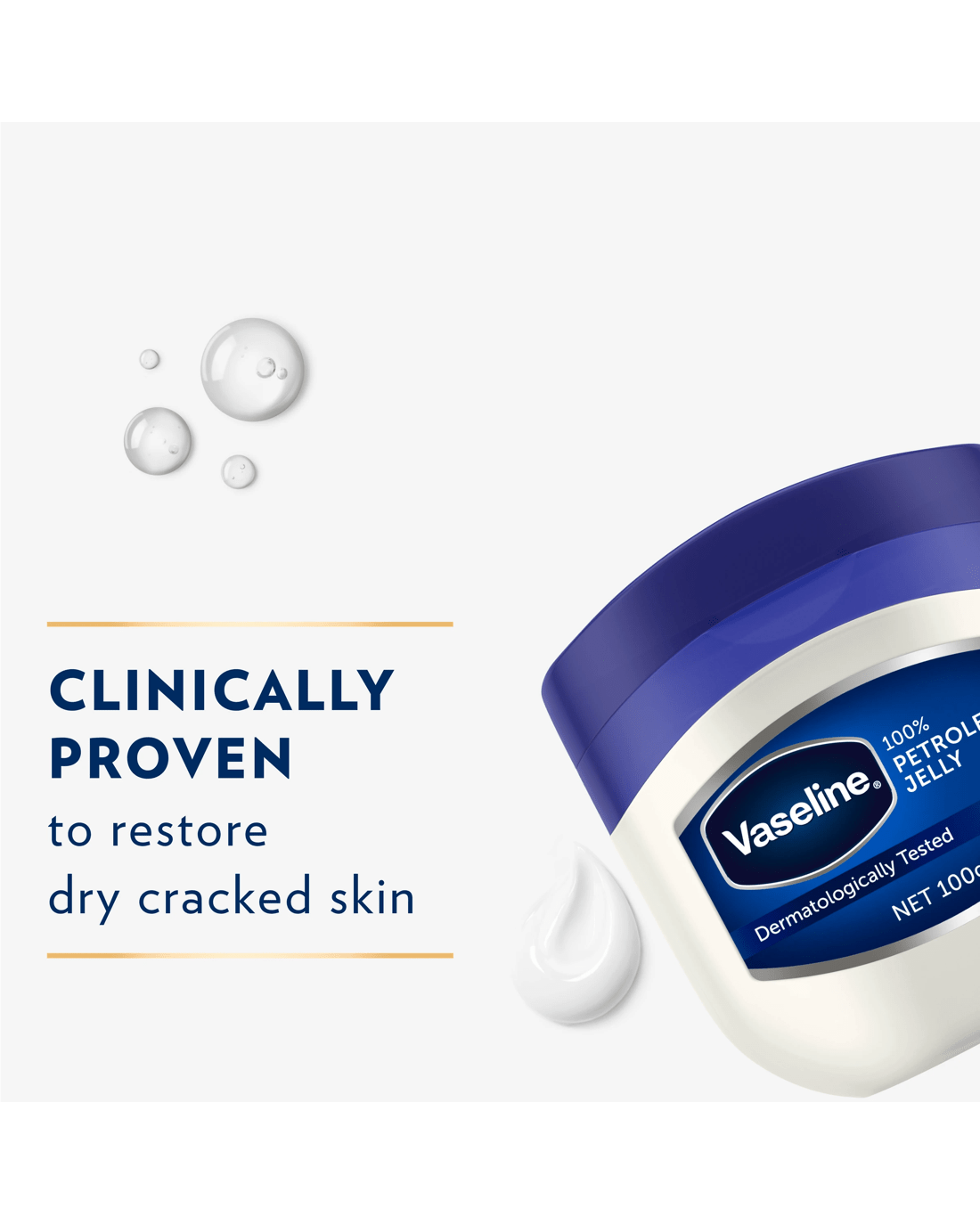 Vaseline Petroleum Jelly is the original wonder jelly. Perfect for both skin care and lip care, not only is it clinically proven to help restore dry skin, but it can also be used as an effective lip balm, helping relieve chapped lips by replenishing moisture.