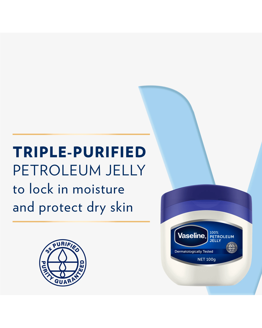 - Triple purified petroleum jelly to lock-in moisture and protect dry skin