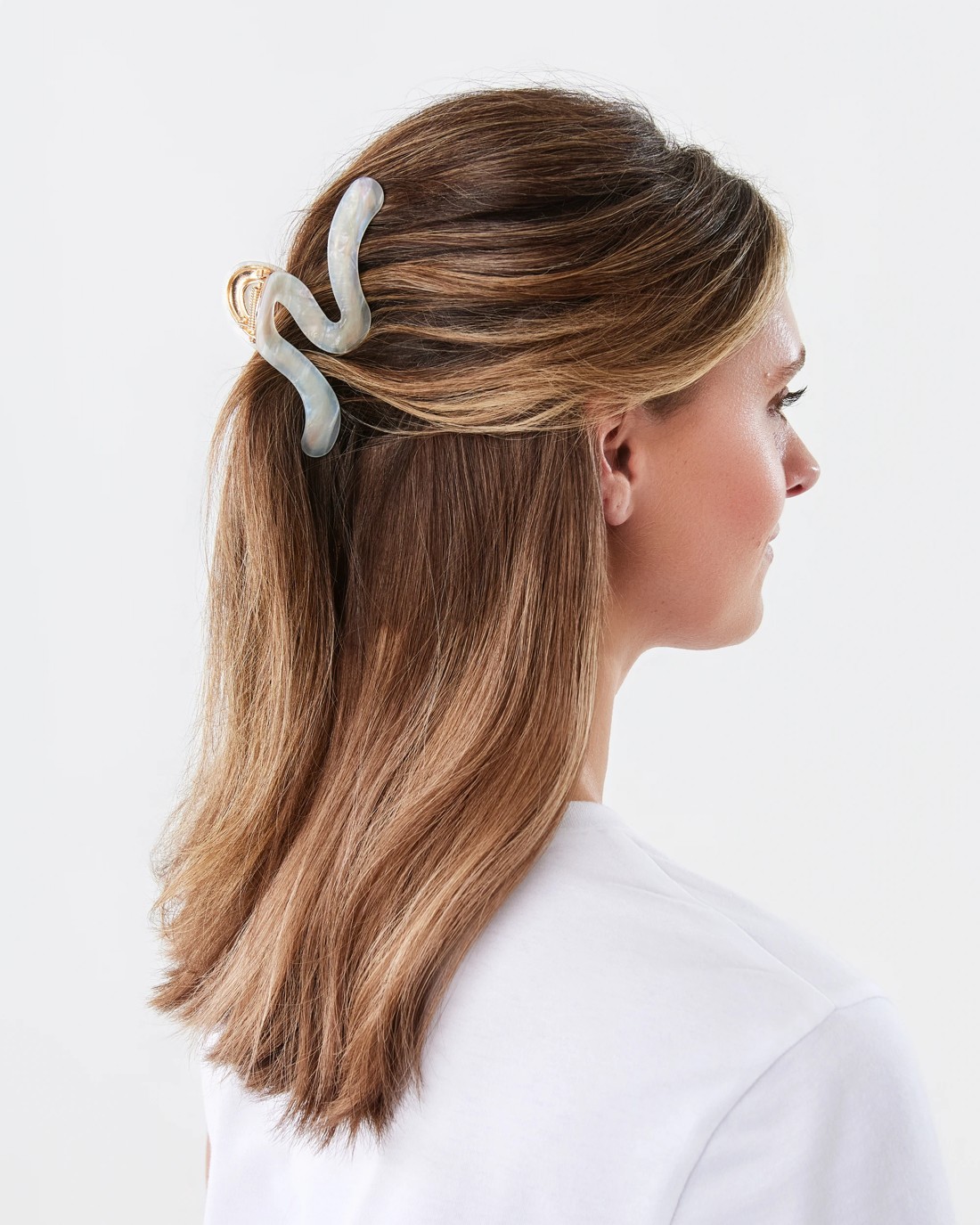 Elegant detail meets everyday style with this White Swirl Metal Resin Claw Hair Clip that adds a modern, polished touch to any hairstyle. Easy to secure and versatile to wear, it’s a simple way to finish both casual and dressy looks.