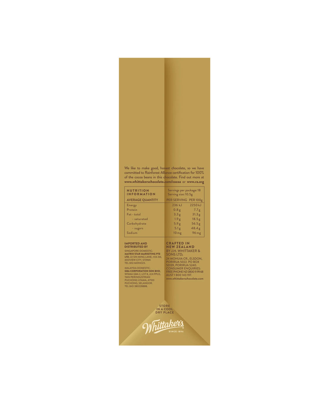 - West Coast Buttermilk Caramelised in White Chocolate: Sugar, Cocoa Butter+ 28%*, Buttermilk Powder 15%*, New Zealand Milk Powder 15%*, Emulsifier (Soy Lecithin), Cocoa Mass+, Natural Flavours, Vanilla Flavour