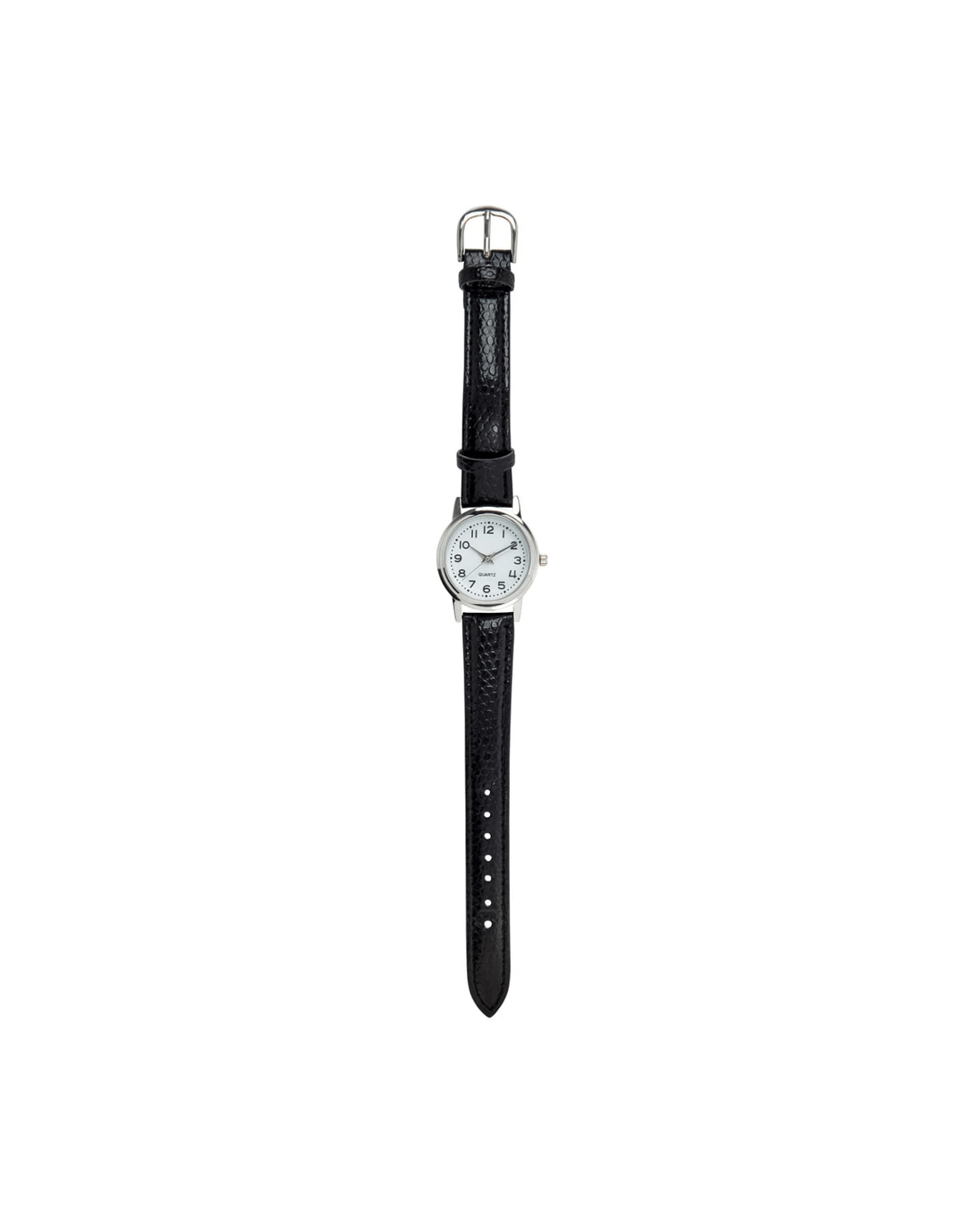 Womens Classic Analogue Watch with Silver Case & Black Strap