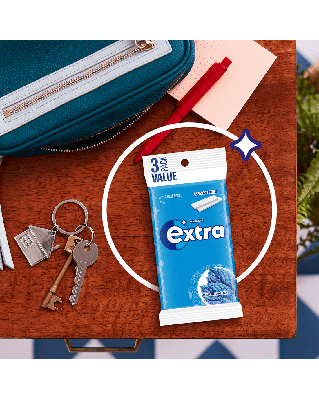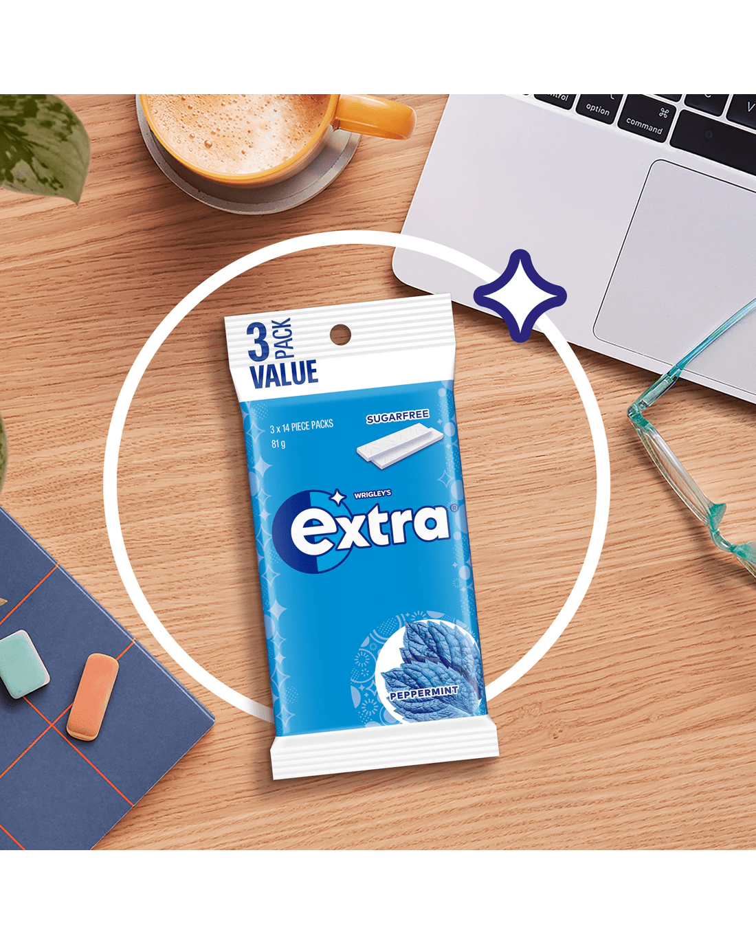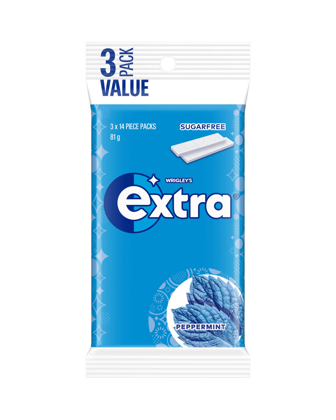 - Includes 3 x 14-piece packs of Extra Peppermint Sugar Free Chewing Gum