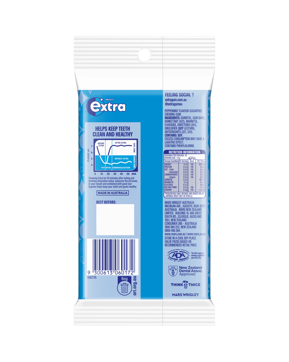 Additional Information- To learn more about chewing gum benefits, visit wrigleyextra.com.au.