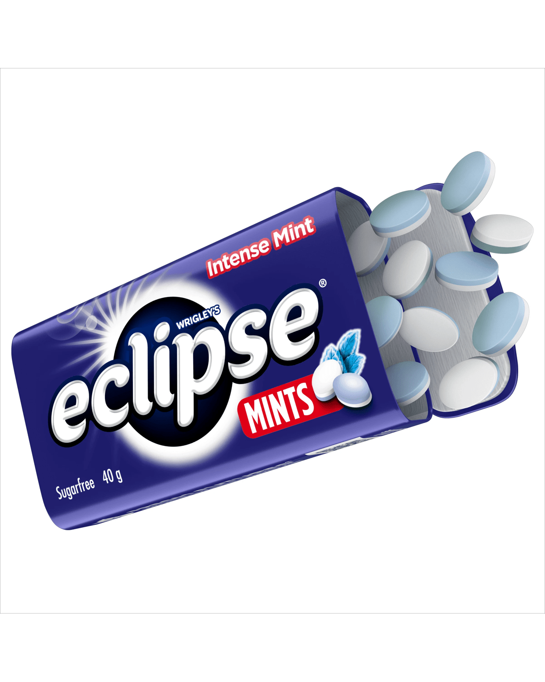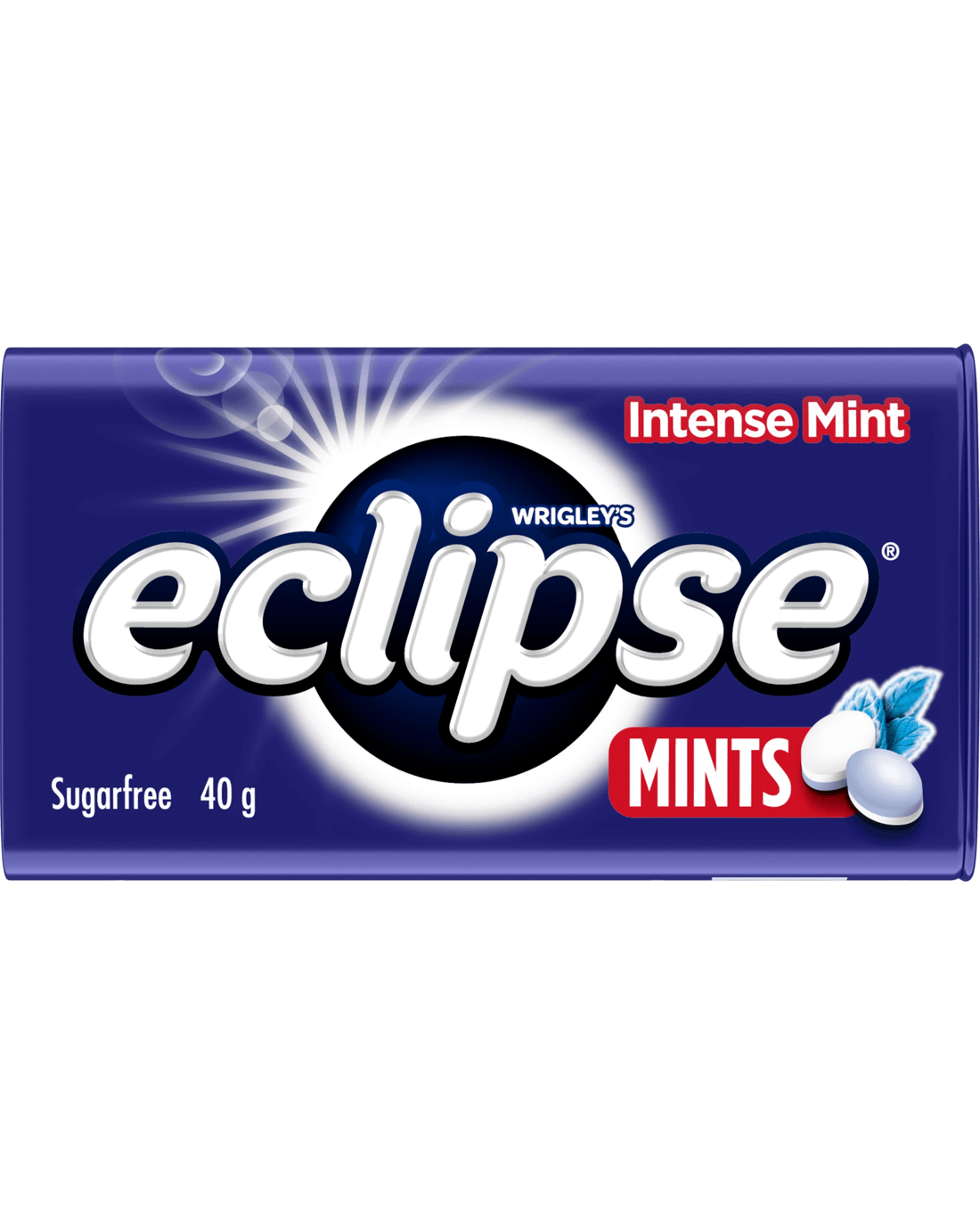 Refreshing things happen when you carry a tin of Wrigley's Eclipse mint-flavoured sugar-free mints with you. As well as being the best breath mints for when you're on the go or after a cup of coffee, these Eclipse mints are the friendly way to break the ice and share a moment no matter where you are! Each little hard-pressed Eclipse mint treats you to a powerful, intensely minty fresh breath experience! What's more, they're sugar-free mints without the guilt as there are less than three calories in Eclipse mints! So keep this tin of Wrigleys's Eclipse Intense Mint Flavoured Mints handy, and let there be fresh! Includes 40g large sharing mint tin of Eclipse Intense Mint Sugar Free Mints.