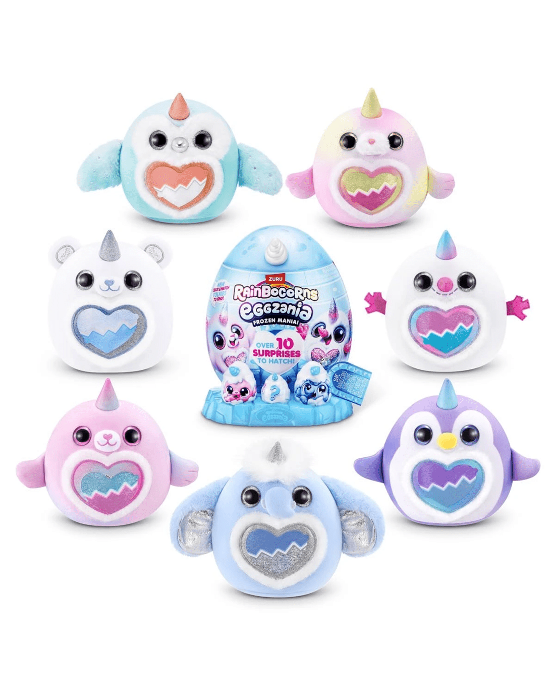 Enter the magical realm of Eggzania with the exciting new Eggzania Frozencorn Mania! Hatch the frosty egg to uncover over 10 snowy surprises, each more enchanting than the last. You might even discover the rare snowman hidden inside! With seven unique characters to collect, every egg holds a new adventure. Will you be lucky enough to find them all? Hatch the egg, meet your new plush and discover more than 10 magical surprises, each adding a touch of winter magic! Peel to reveal its magic heart and unlock even more magic with fun, wearable accessories. Expand your magical realm by collecting all seven plushes, each one with its own unique style and charm. Dive into the frosty fun today and experience the wonders of Eggzania Frozencorn Mania!