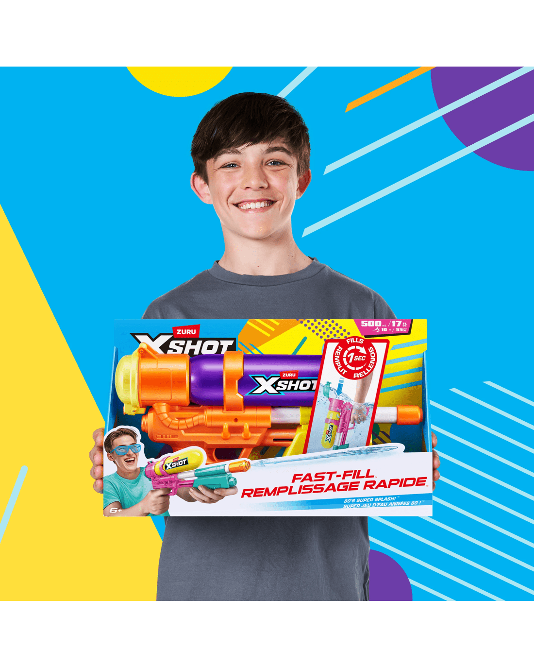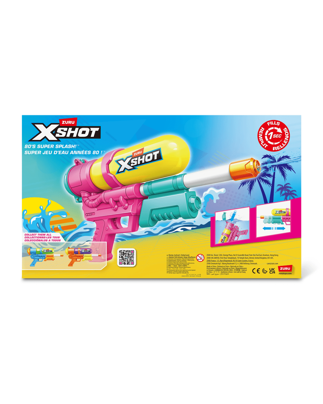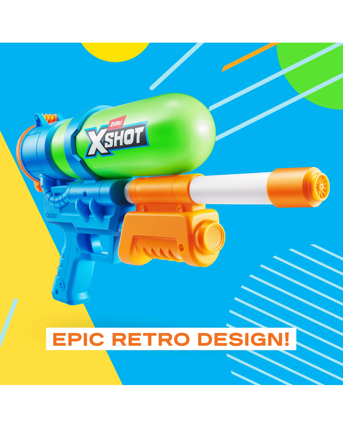 Channel vintage vibes with the X-Shot Water Fast-Fill 80s Super Splash Water Blaster by ZURU – the ultimate throwback blaster with modern soaking power! Designed for kids, teens and adults who love backyard battles, this bold, retro-styled blaster combines eye-catching colours and shapes with performance-driven features. Using X-Shot’s signature Fast-Fill technology, you can refill the Retro Fast-Fill in just one second – simply dunk, fill and seal shut. With a powerful water stream that blasts up to 33ft. (10m), you’ll have the range to drench opponents before they even see you coming. The large 750 ml (17fl. oz.) water tank lets you stay in the game longer without frequent refills, making it ideal for beach days, poolside fun or backyard ambushes. The lightweight yet durable design makes it easy to handle, even for younger players, while the bold retro theme ensures you’ll stand out in any water fight. Perfect for aged 6+, the X-Shot Water Retro Fast-Fill Water Blaster by ZURU delivers fast refills, high-powered blasts and non-stop outdoor fun. Get ready to soak, splash and make waves this summer with a blaster built for style and performance!